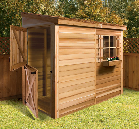 DIY STORAGE SHEDS. The Cedarshed Bayside Kit is an attractive and functional storage shed solution. It can be erected against a house or fence. This yard shed has a compact size ideal for tool storage or for smaller gardening tools.