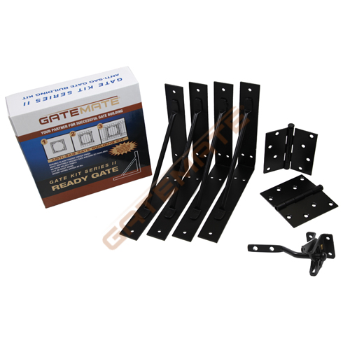 This kit will work for gates 25 in. to 72 in. and includes four right angle corner braces, two 4 in. butt hinges, one 2 in. auto latch and all mounting hardware. Fence lumber not included. (098 1503)