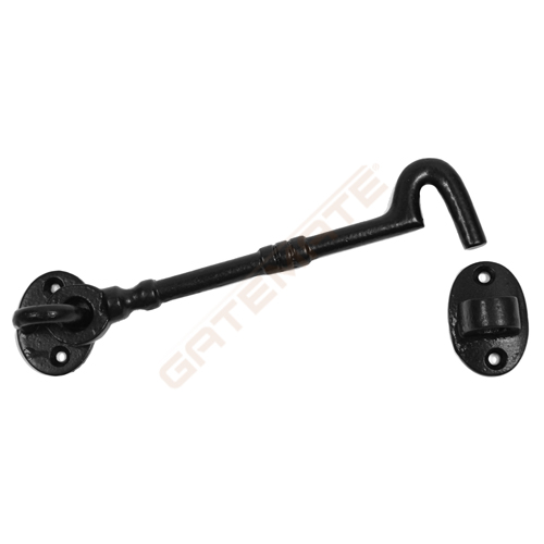 Decorative Hooks for use on Wood Doors, Gates, and Sheds. Ideal for creating or restoring the old world look. Available in 4″ or 6″. Hand Pounded Black Finish. 5 per box.