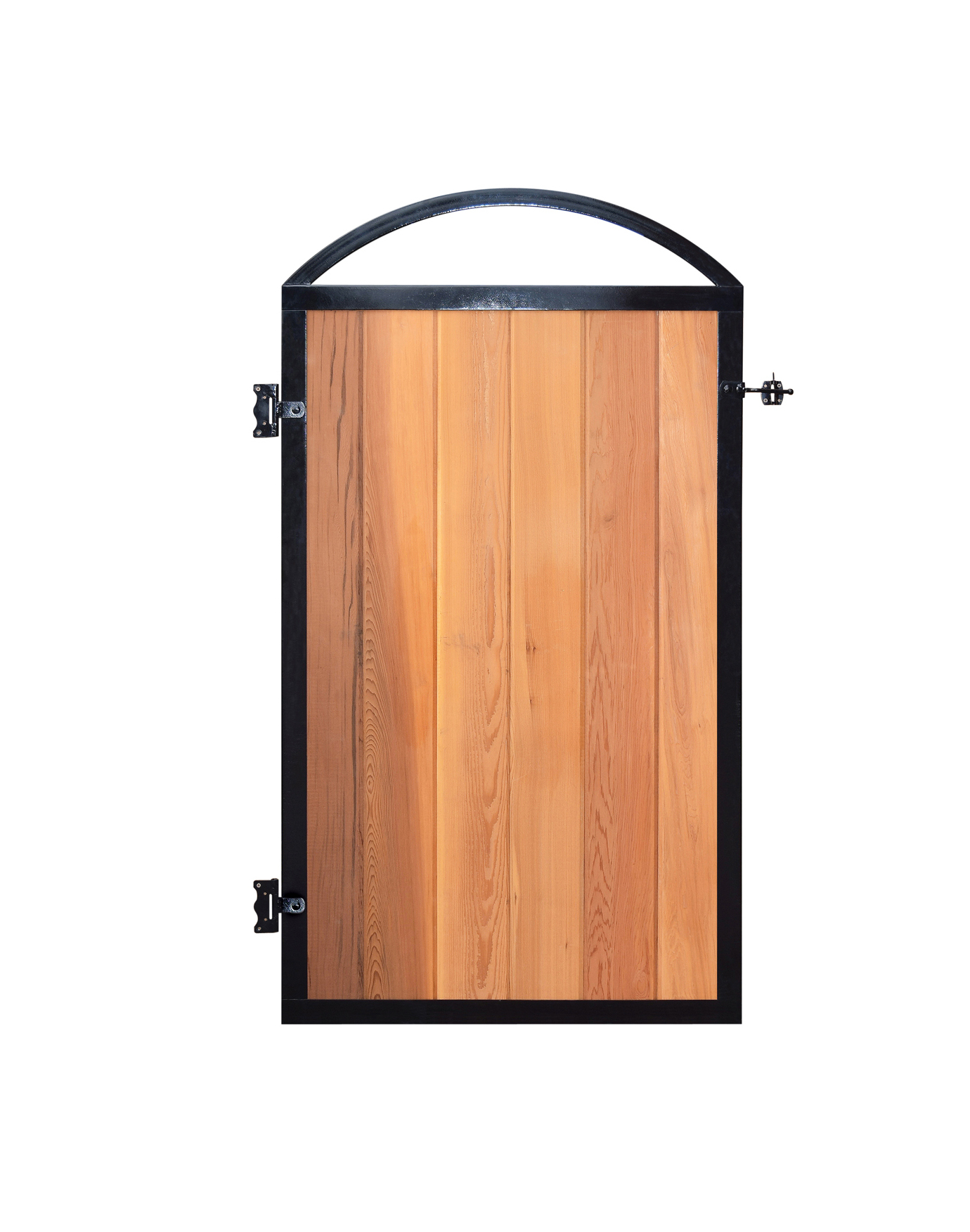 Decorative metal gate frame that allows for various types and sizes of cedar boards. The Gate frame kit comes with hinges, latch & catch and mounting hardware.